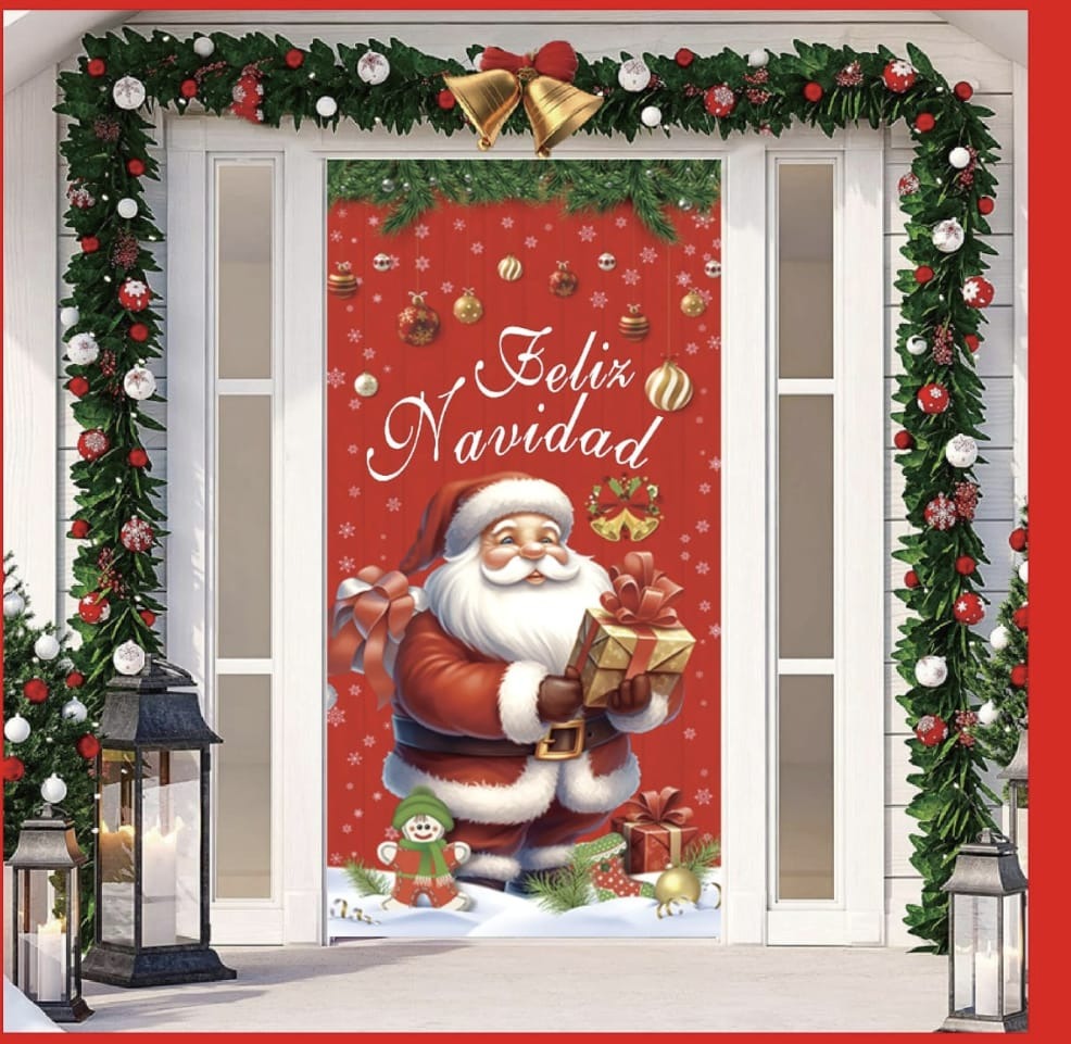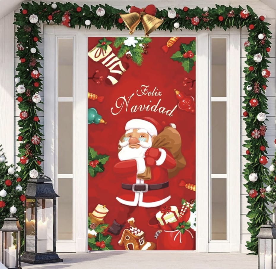 - Diseño Impreso Completo: Cubre toda la puerta con imagen navideña