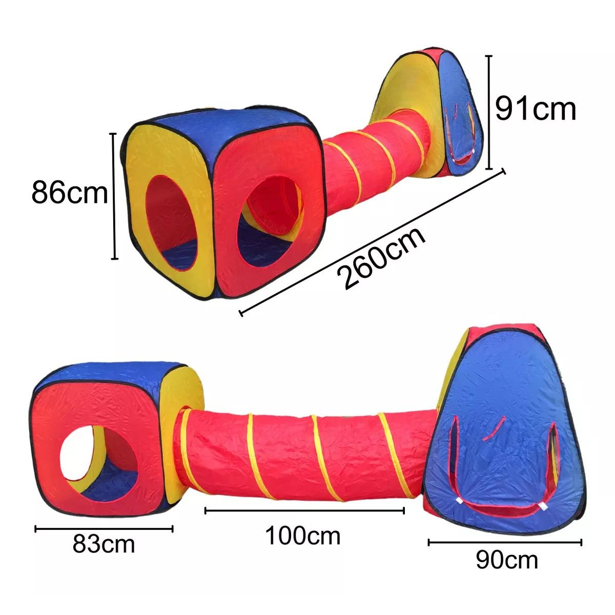 Túnel de aventuras: Conecta la carpa y agrega emoción, estimulando la exploración y el desarrollo de habilidades motoras.