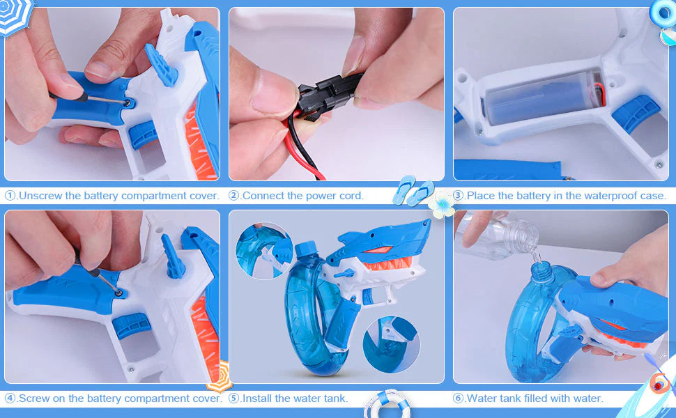 ¡Prepárate para la guerra de agua más emocionante y divertida con esta pistola eléctrica estilo tiburón!
