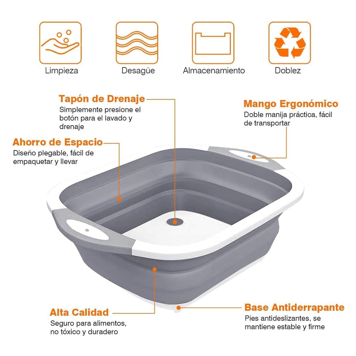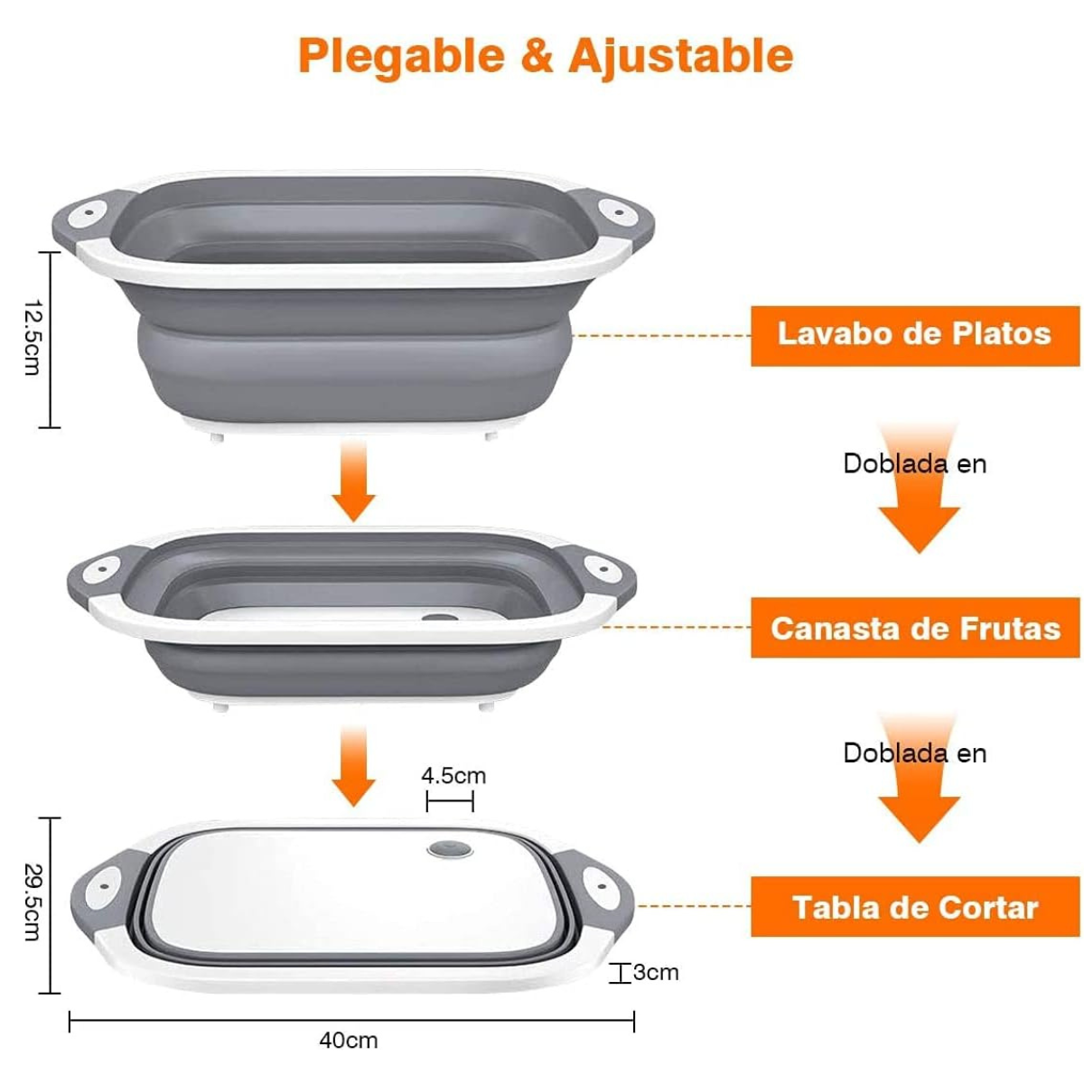 Tabla de corte expandible 3 en 1 con colador integrado. Ahorra espacio, expande cuando necesitas y guarda compacta. Perfecta para cocinas modernas.